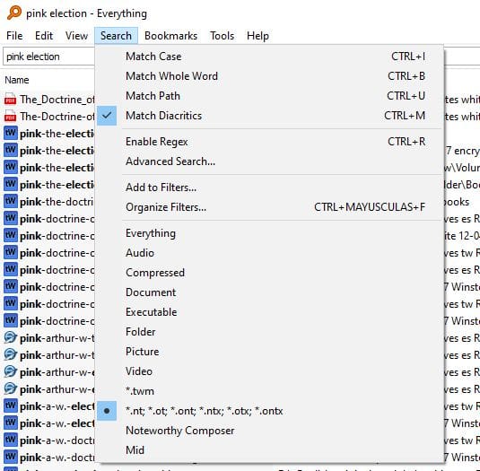 Moreover, on the menu bar of Everything, there is a search filter option.