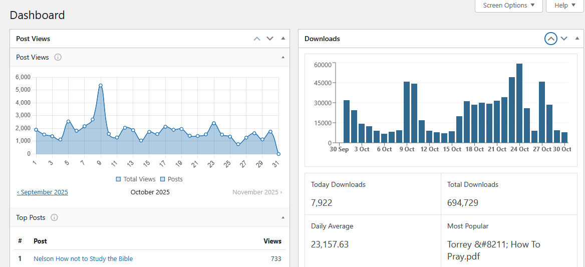 Note: My Spanish tract website is www.folletosytratados.com. My English tract website is coxtracts.com. I have had the same problem with my hosting company with coxtracts, and I reset that website’s download counter in October also. It was at 5,029,044 downloads in October 2025 when I reset it, and it is now within a few weeks of resetting to zero it is at 136,189 with only 134 pdfs to download. twmodules.com currently has 3,588 files to download in comparison. Folletosytratados.com has 609 pdfs to download and has 1,349,817 downloads.