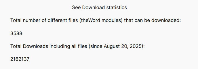 It would be excellent if those people who are downloading so many theWord modules, if they would consider a $10 cup of coffee gift to me for every 1000 Christian reference works, formatted in this Bible Program format. By my way of thinking, if you buy a cup of coffee at Starbucks, that should set you back $10. If there have been (by the end of 2025) 5 million downloads, then $10 per 1000 would be around $5000 in donations. My hosting costs for all my websites run around $2000 to $2500/year. That would more than pay my actual bills. Considering that I am still, with all the mess this past year, I am still finding and formatting new works for theWord.