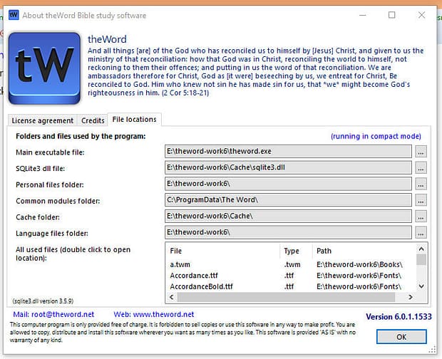 Note: Where theWord looks for modules. Open theWord, click Help on the main menu, then in the dialog box, there are three tabs. Click on the “File locations” tab. You should see something like this.